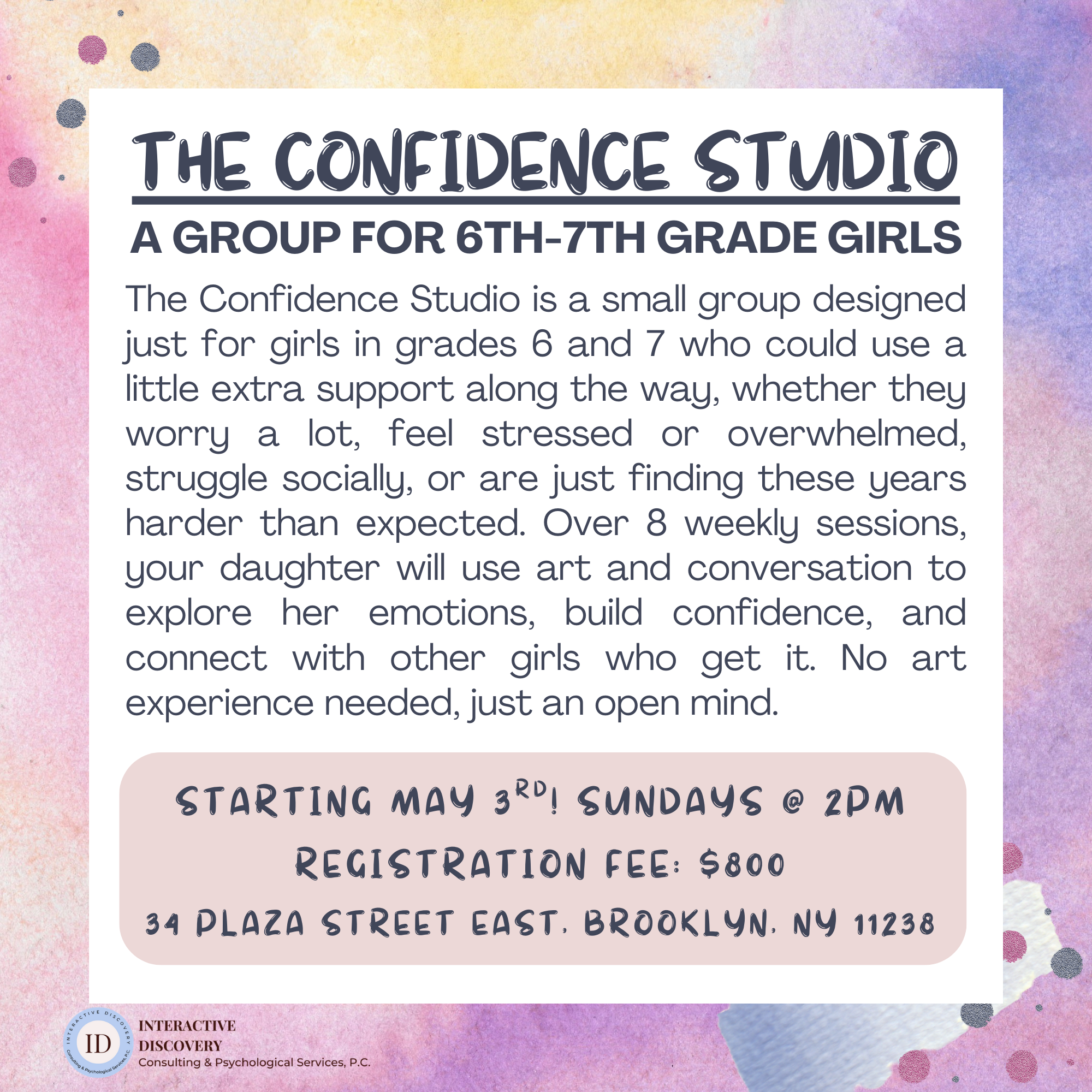 The Confidence Studio: A Group for 6th-7th Grade Girls